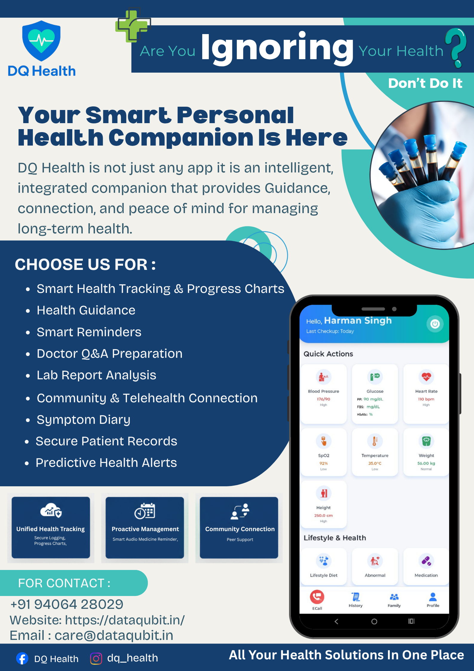 With DQ Health, experience a smart, connected, and caring platform that helps you track, manage, and improve your complete well-being — anytime, anywhere.